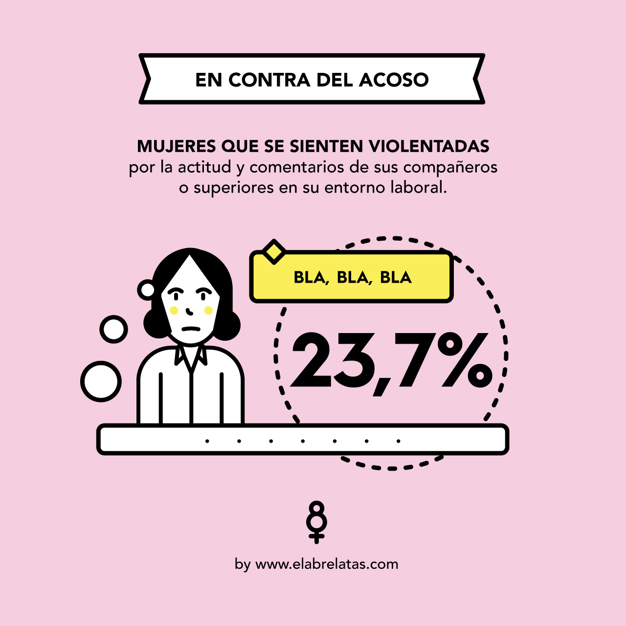 Sin embargo, aunque se ha avanzado en algunos aspectos, en nuestro país sigue habiendo desigualdad de género en muchos ámbitos de nuestro día a día. Desde el micromachismo, el acoso, o situaciones de agreden contra la propia persona. Este es el motivo que me he lanzado a crear unas pequeñas infografías que dan visibilidad a algunos de los datos que más me han sorprendido. Porque creo que si se visibilizan, se pueden resolver.